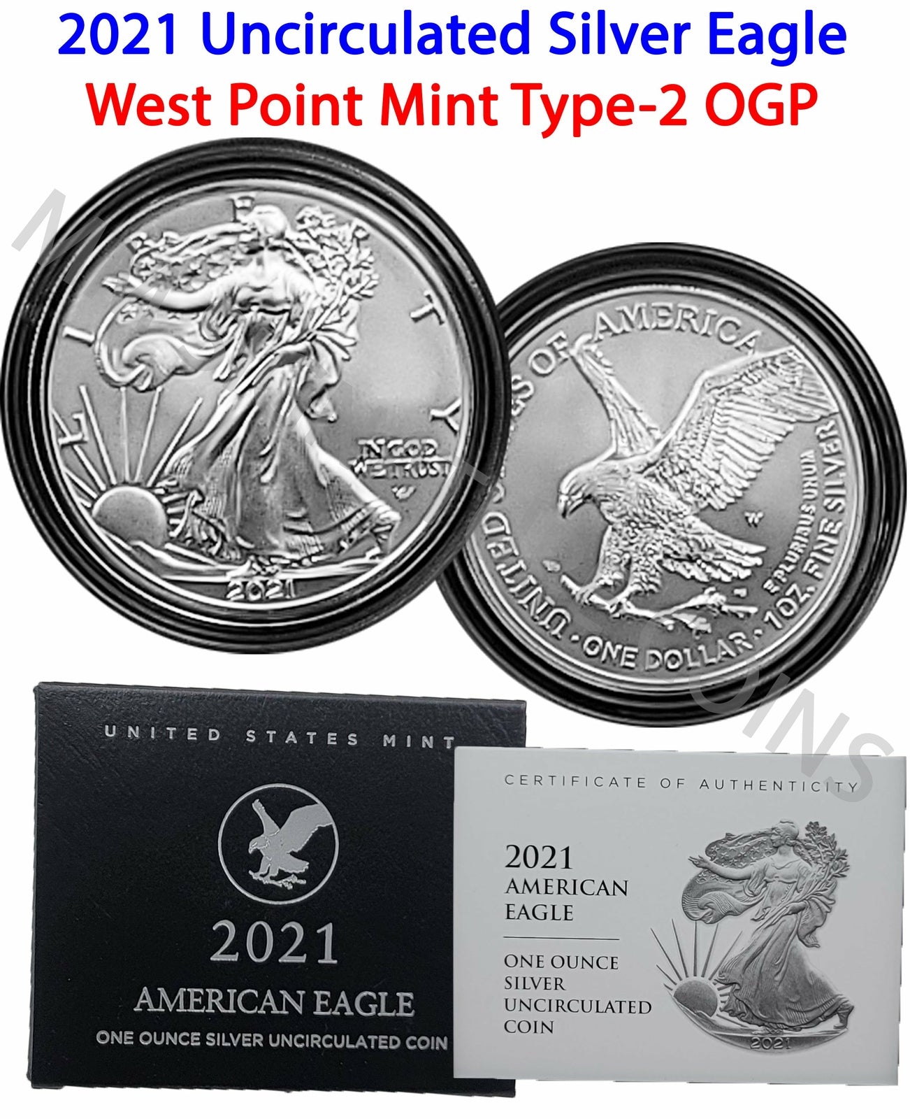 2021 Silver Eagle Type 2 Bullion Dollar Coin .999 Fine Silver