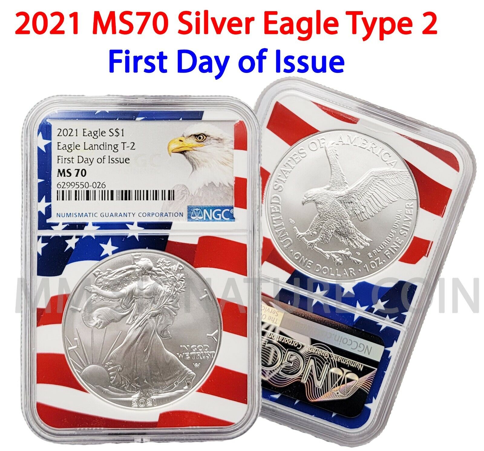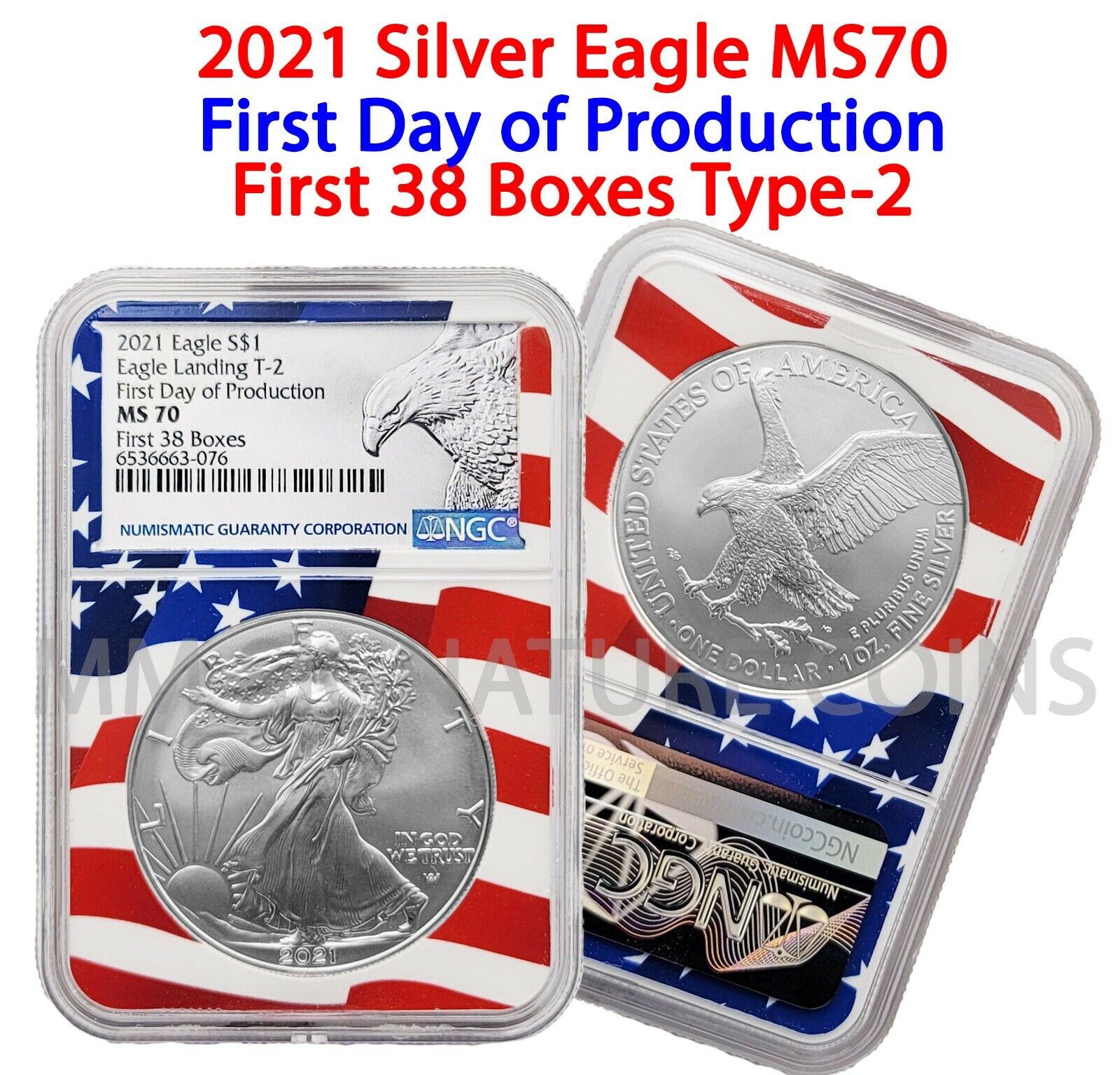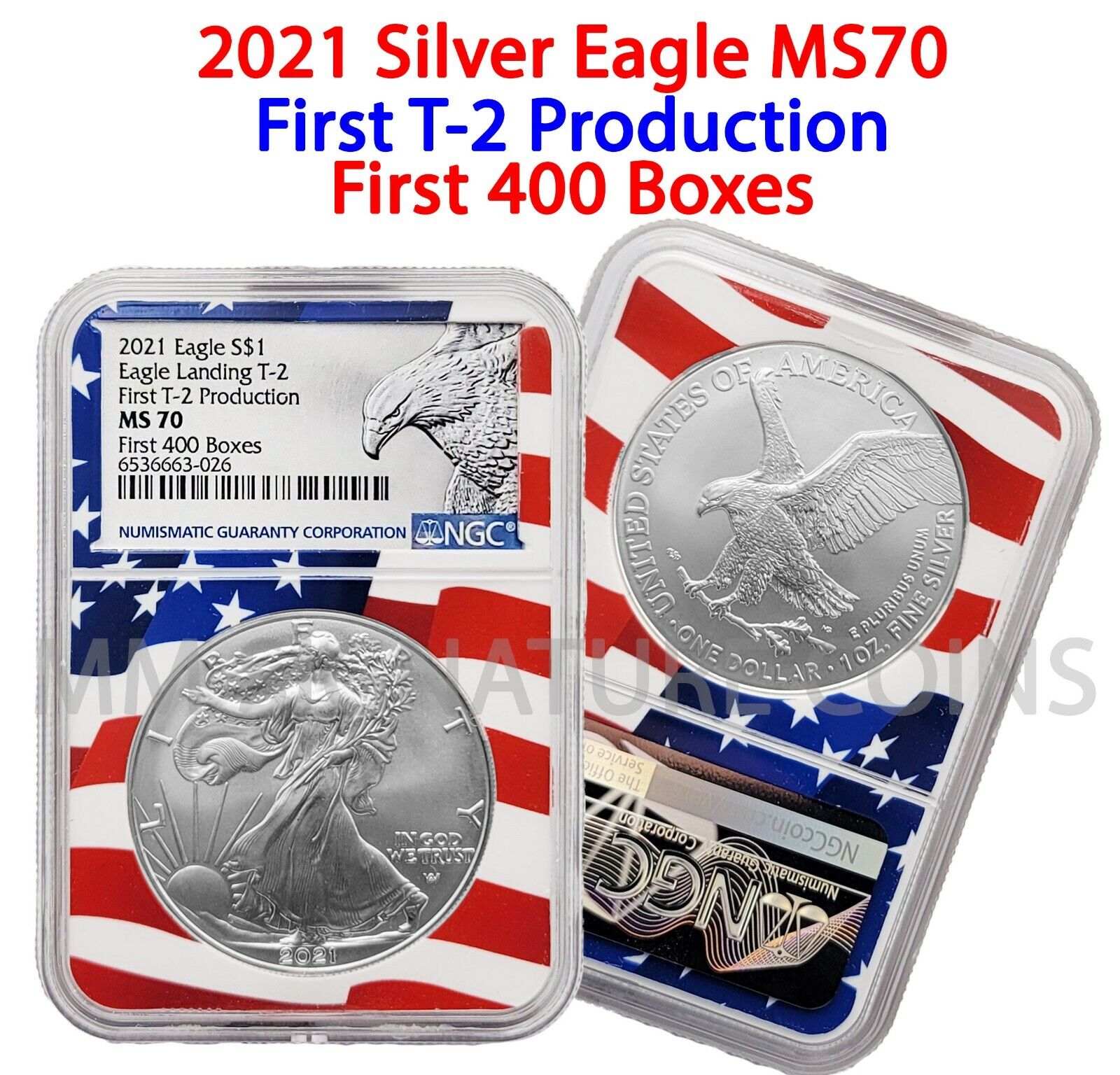 2021 Silver Eagle Type 2 First T-2 Production First 400 Boxes MS70 NGC 1st Year!