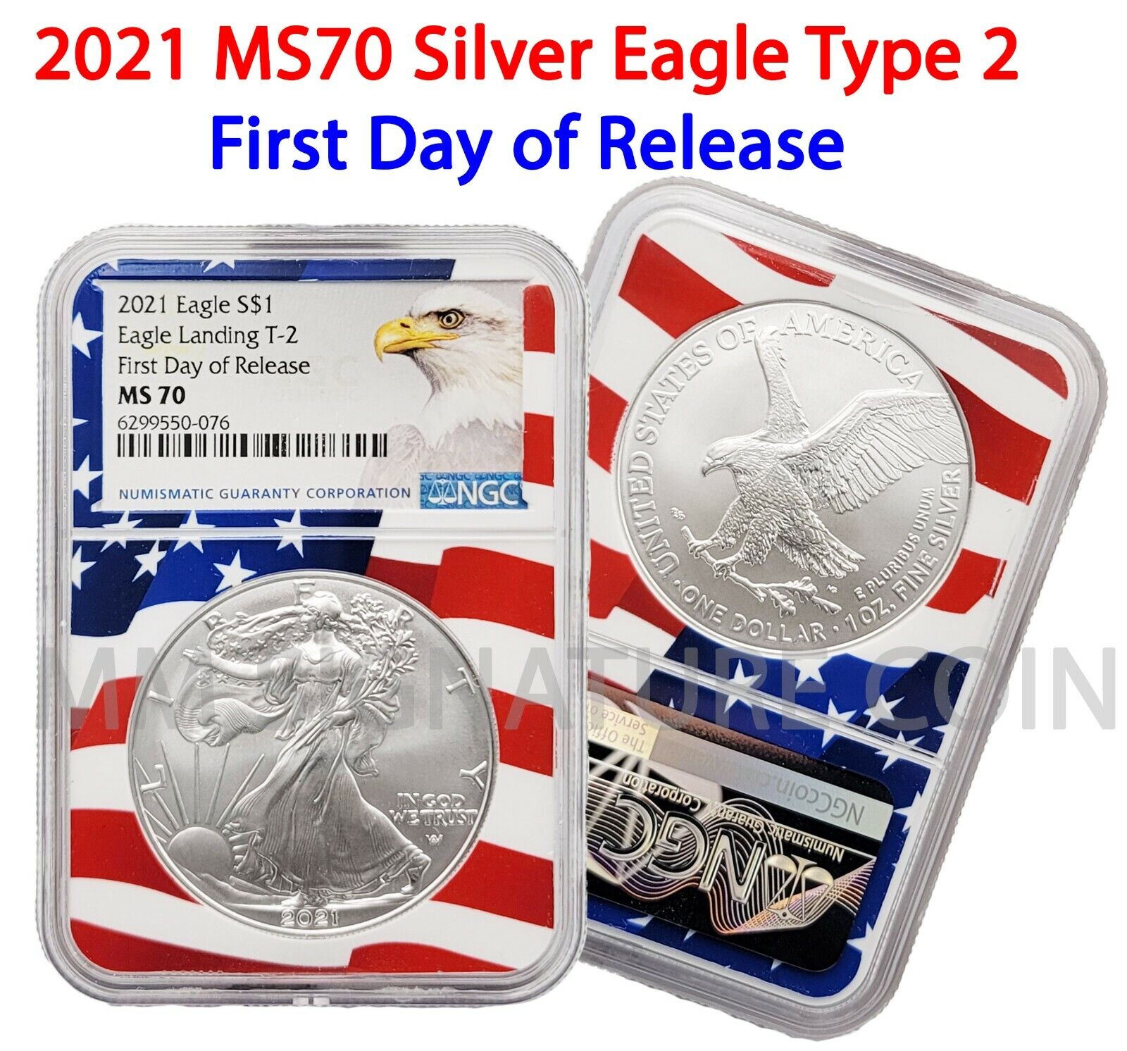 2021 Silver Eagle Type 2 First T-2 Production First 400 Boxes MS70 NGC Flag Core