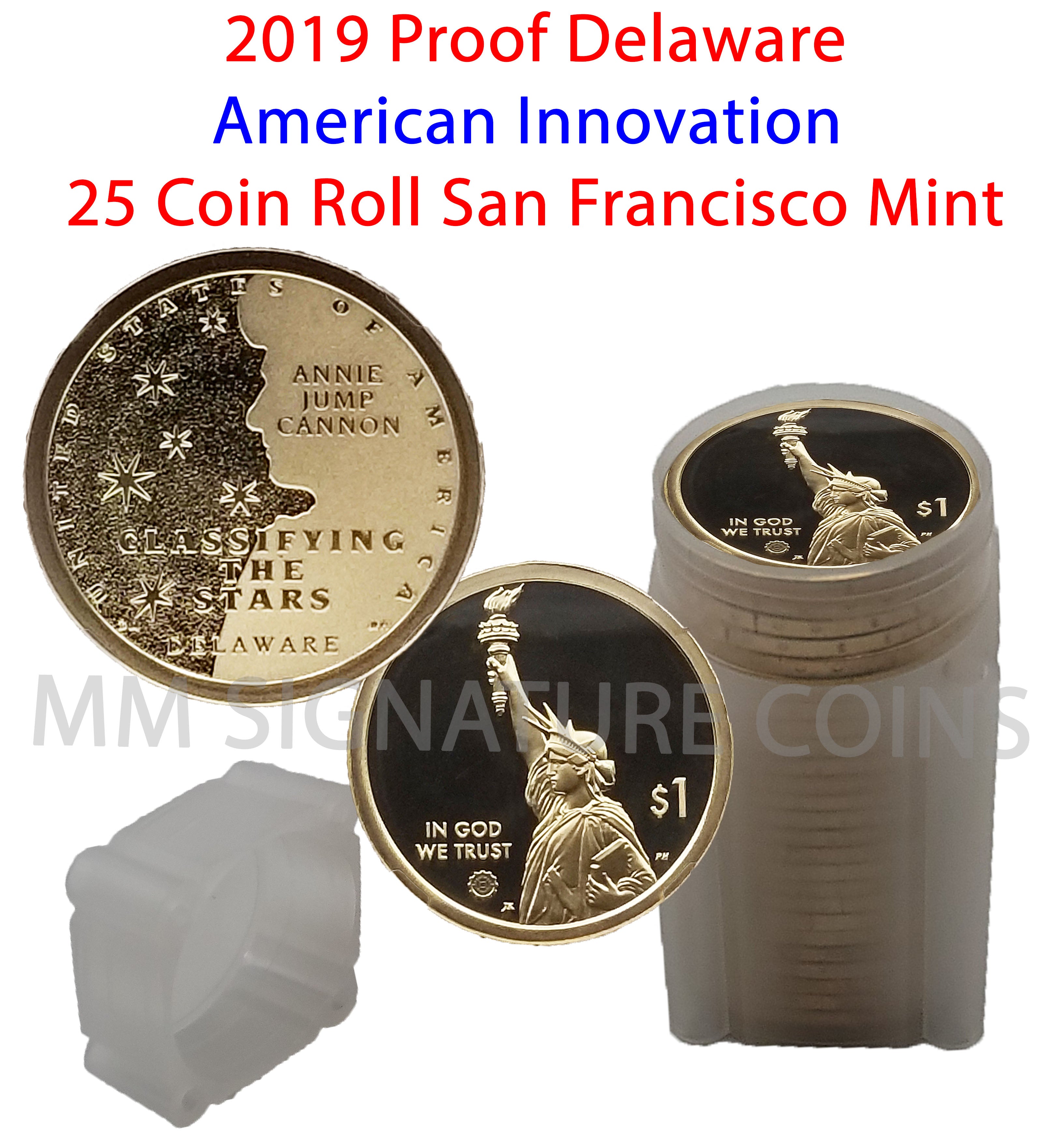 2019 Proof Delaware American Innovation Golden Dollar Coin Roll - 25 Coins