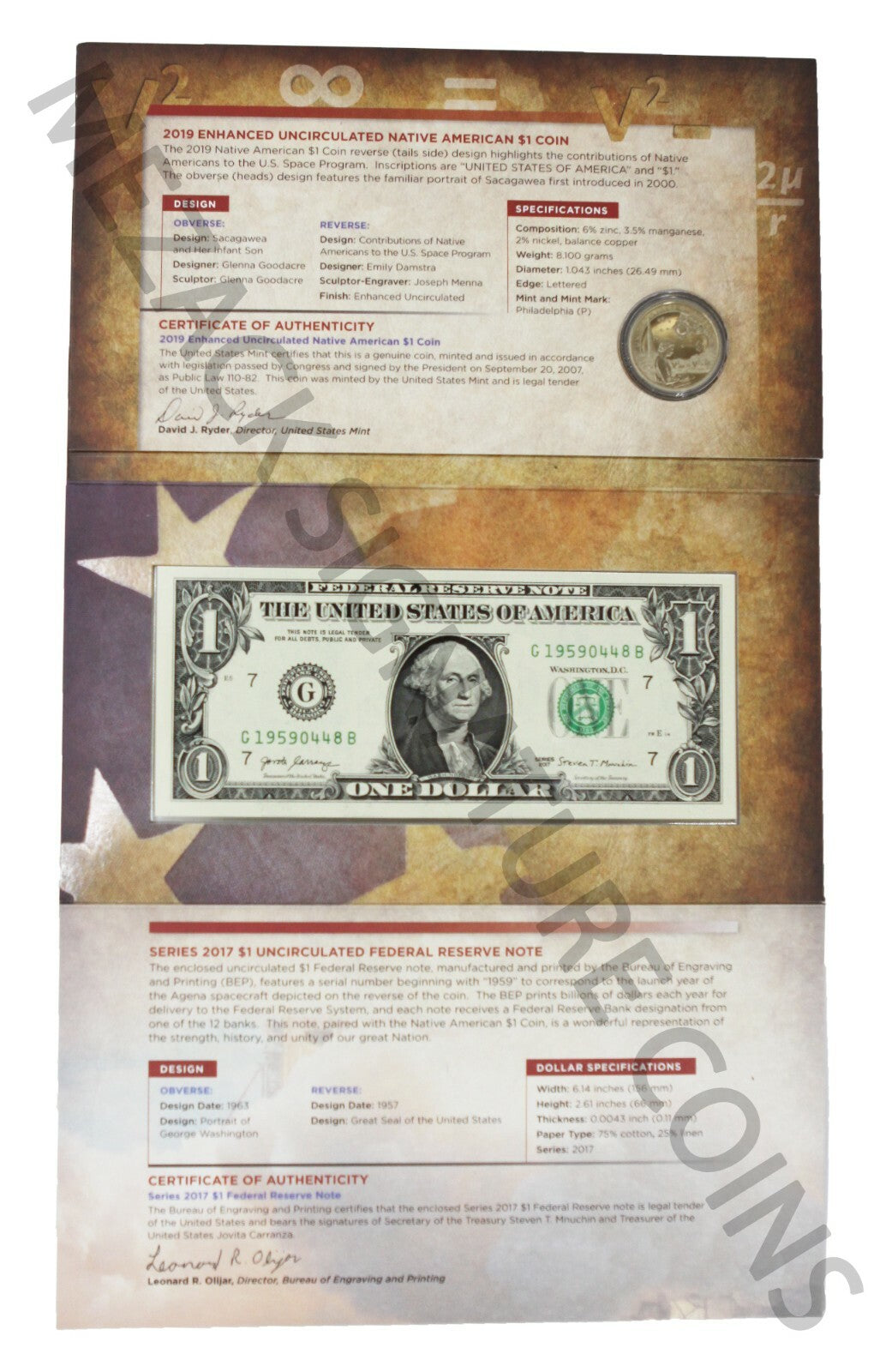 2019 P Enhanced Native American $1 Coin & Currency Set Native American Space