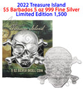 2022 Treasure Island Skull 5 oz Silver Coin from Barbados