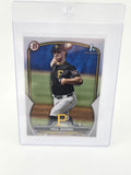 2023 Bowman Draft Paul Skenes Rookie Card #BD-14. This card features the promising talent from the Pittsburgh Pirates, captured in stunning detail as part of Bowman's renowned card series. The base card design is complemented by the crisp, standard-sized paper material, ensuring a high-quality addition to any enthusiast's selection.