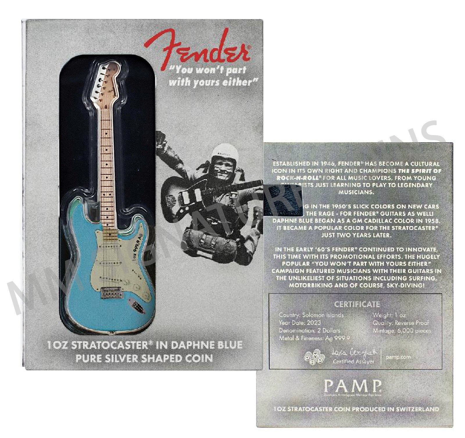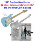 2023 Fender Stratocaster Daphne Blue Guitar Coin 1oz Silver PAMP Solomon Islands
