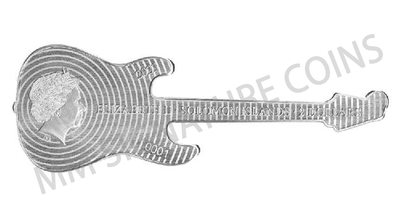 This 1oz pure silver guitar shaped coin captures this classic