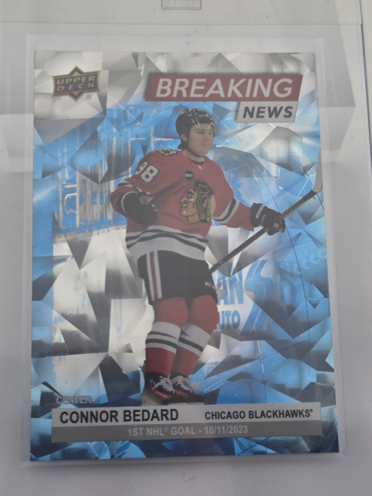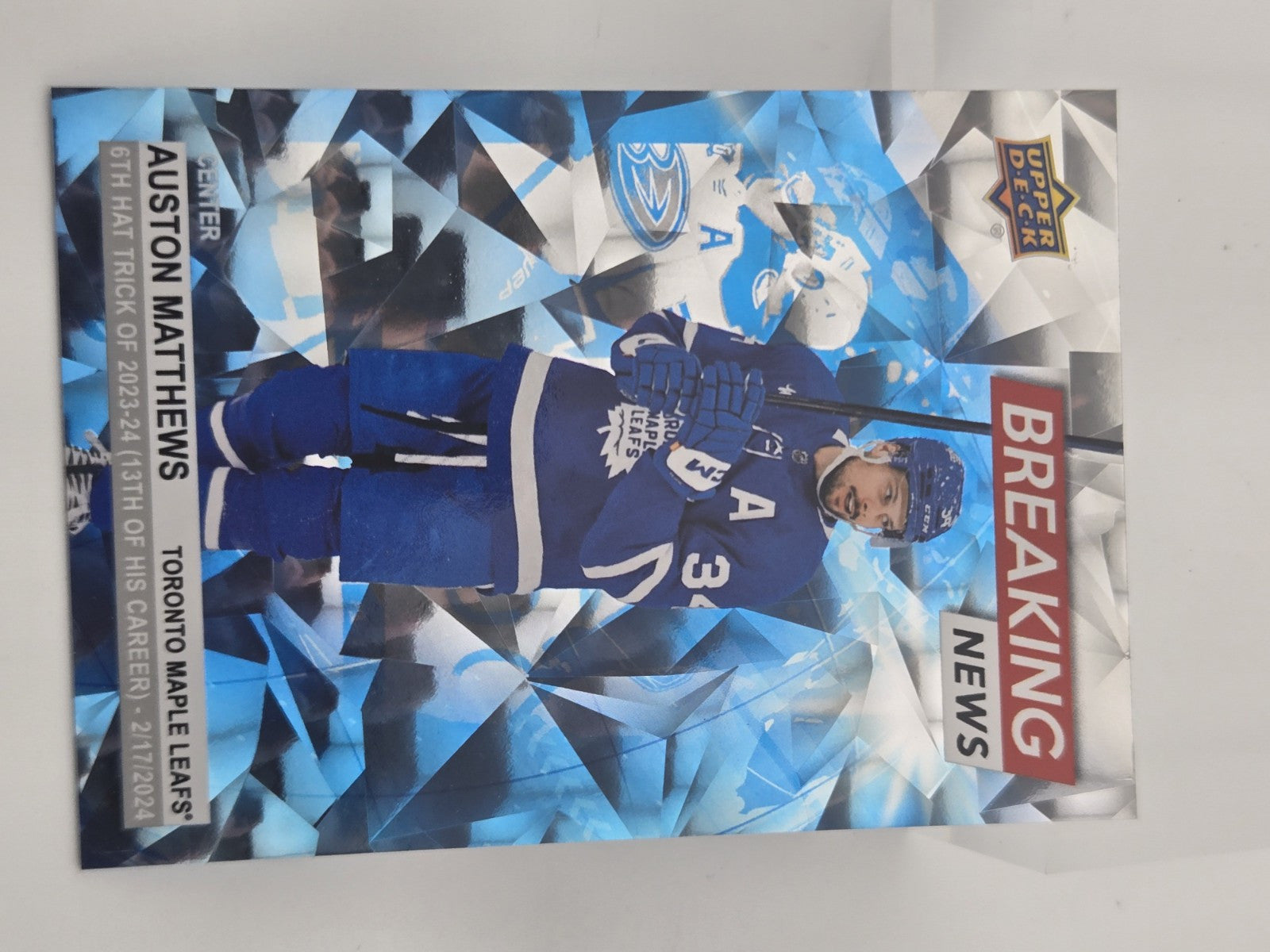 Elevate your collection with the 2024-25 Upper Deck Hockey BREAKING NEWS Set, a comprehensive 34 card set that captures the essence of the ice with vivid imagery and detailed player information. Designed for enthusiasts of the National Hockey League, this set is a tribute to the sport's finest moments, encased in an elegant acrylic display to preserve each card’s pristine quality.