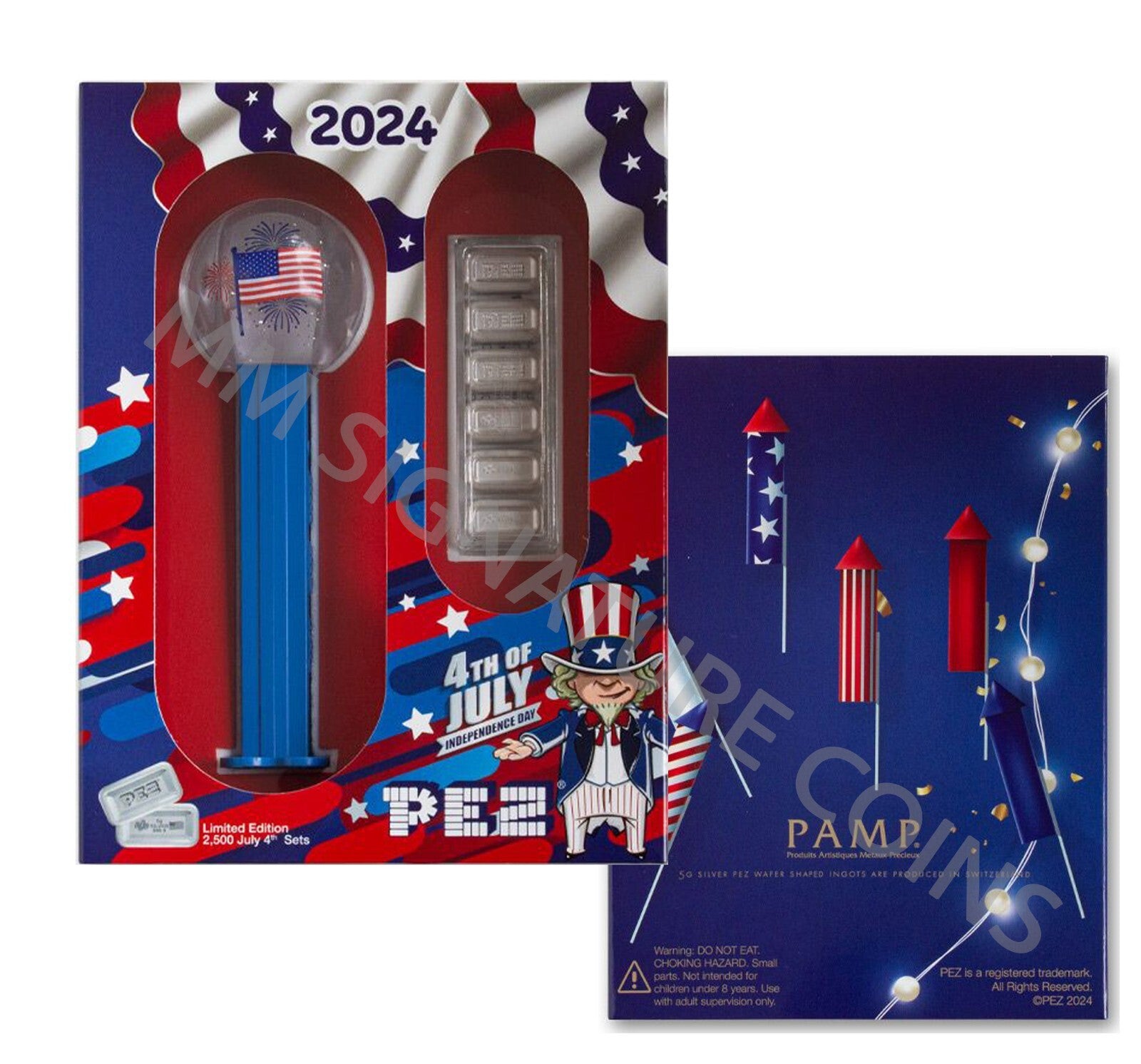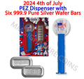 2024 4th of July Fourth PEZ Dispenser PAMP six 5g of 999.9 Fine Silver Wafers