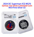 2024 DC Comics Superman Colorized 1 oz $5 Silver Coin Certified MS70 ICG Samoa