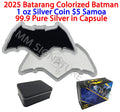 2025 1 oz .999 Silver Batman Batarang Colorized Shaped Coin BU $5 Samoa