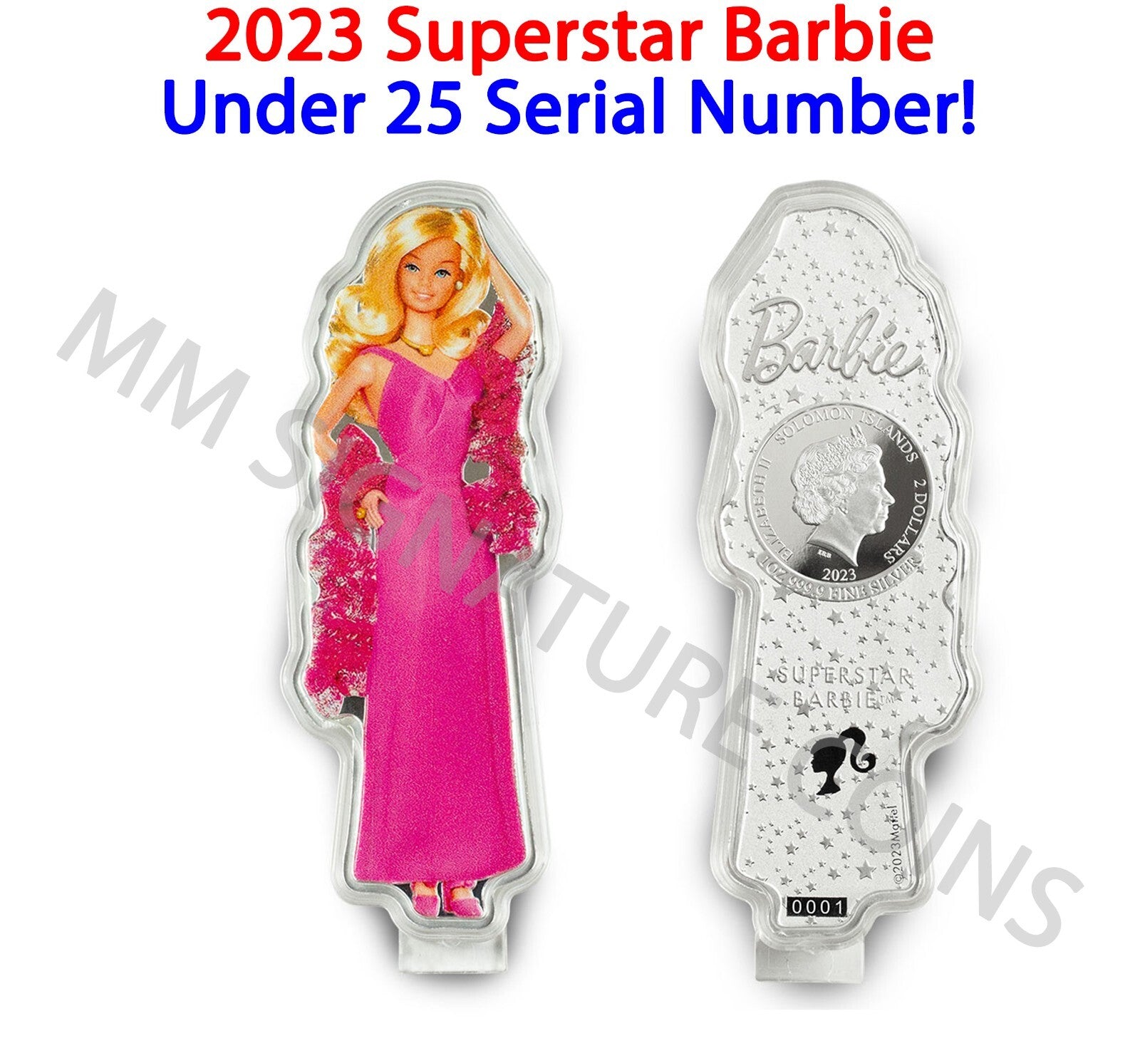 BARBIE 2023 $2 Superstar Barbie Silver Coin Pamp UNDER 25 SERIAL NUMBER