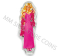 Celebrate the iconic 1977 Superstar Barbie with this limited edition pure silver coin. A specially-shaped design captures her famous pose and silhouette, while its colorization portrays Superstar Barbie's photo-worthy smile, glamorous magenta gown and gemstone accessories with stunning accuracy. The coin includes a protective capsule and posing base, as well as a display box that replicates Superstar Barbie's fashion photo studio and dressing room.
